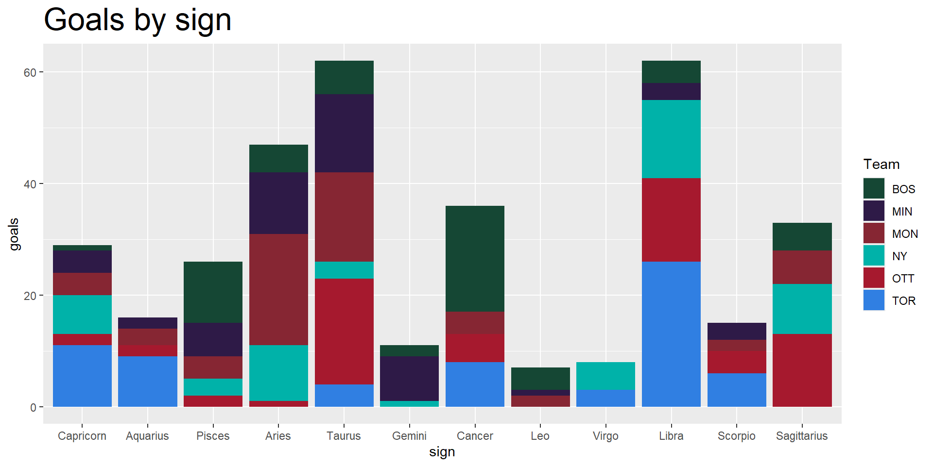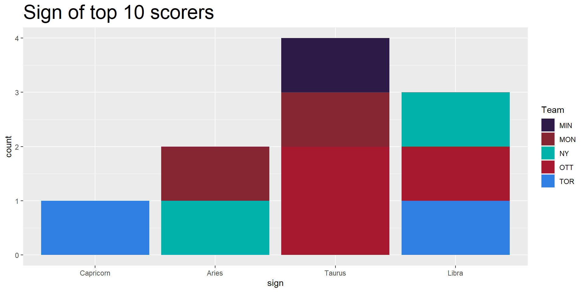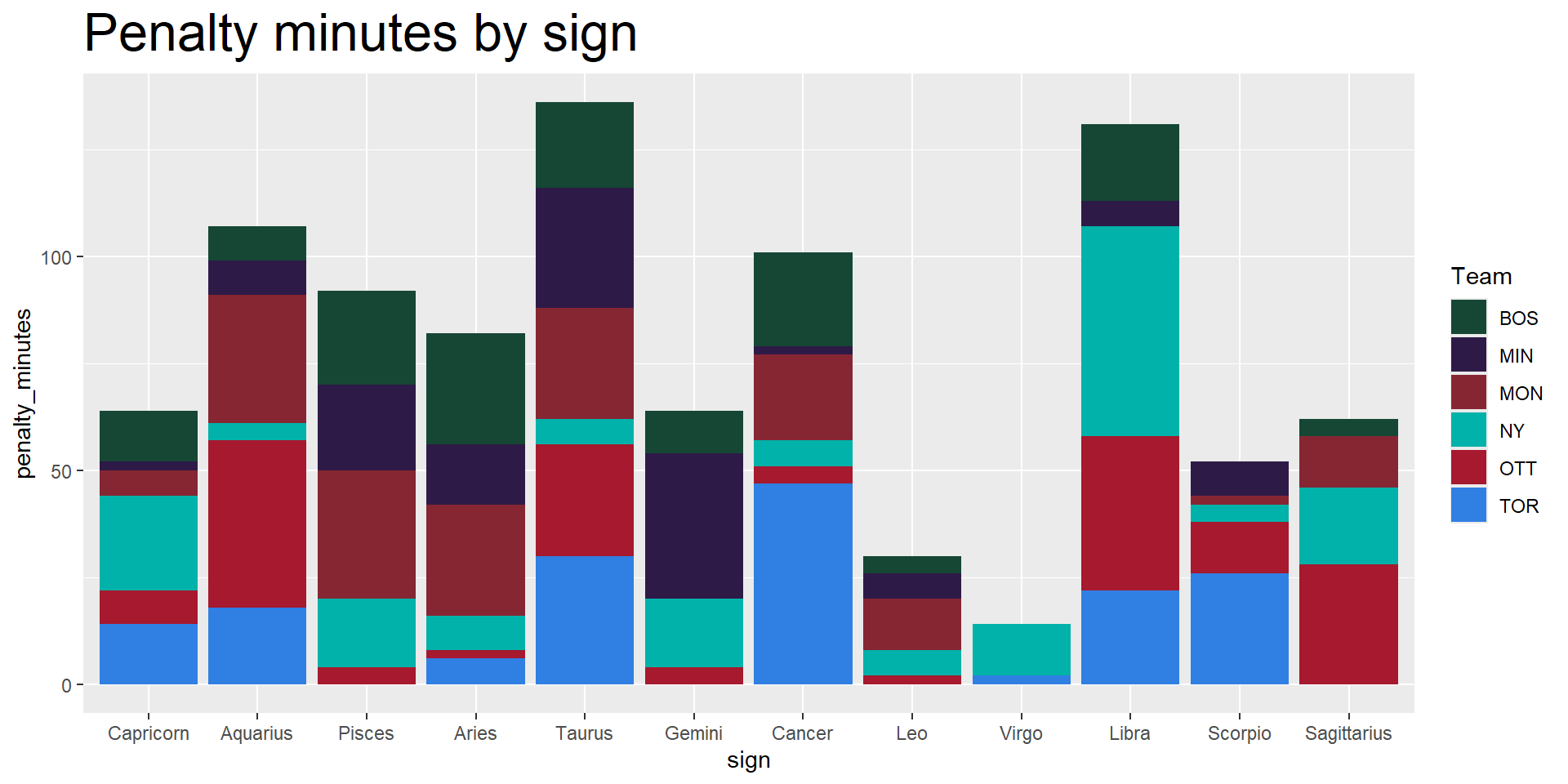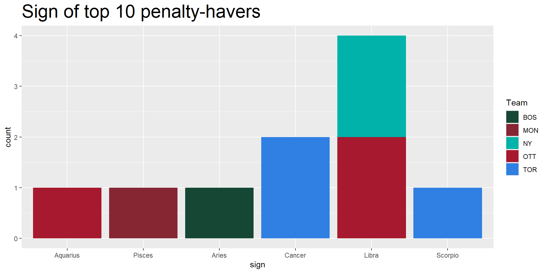 Let’s explore the astrological composition of our top scorers and top penalty minuters!